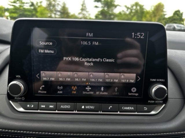 - Radio: AM/FM NissanConnect -inc: 6 speakers plus 2 tweeters, Apple CarPlay, Android Auto, 8" color touch screen display, Bluetooth®, 2 front USB type-C, Wi-Fi hotspot and NissanConnect Services powered by SiriusXM